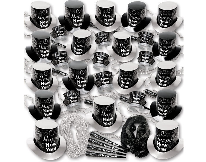 100 Full Size Curved Brim Top Hats with Happy New Year Fireburst Design